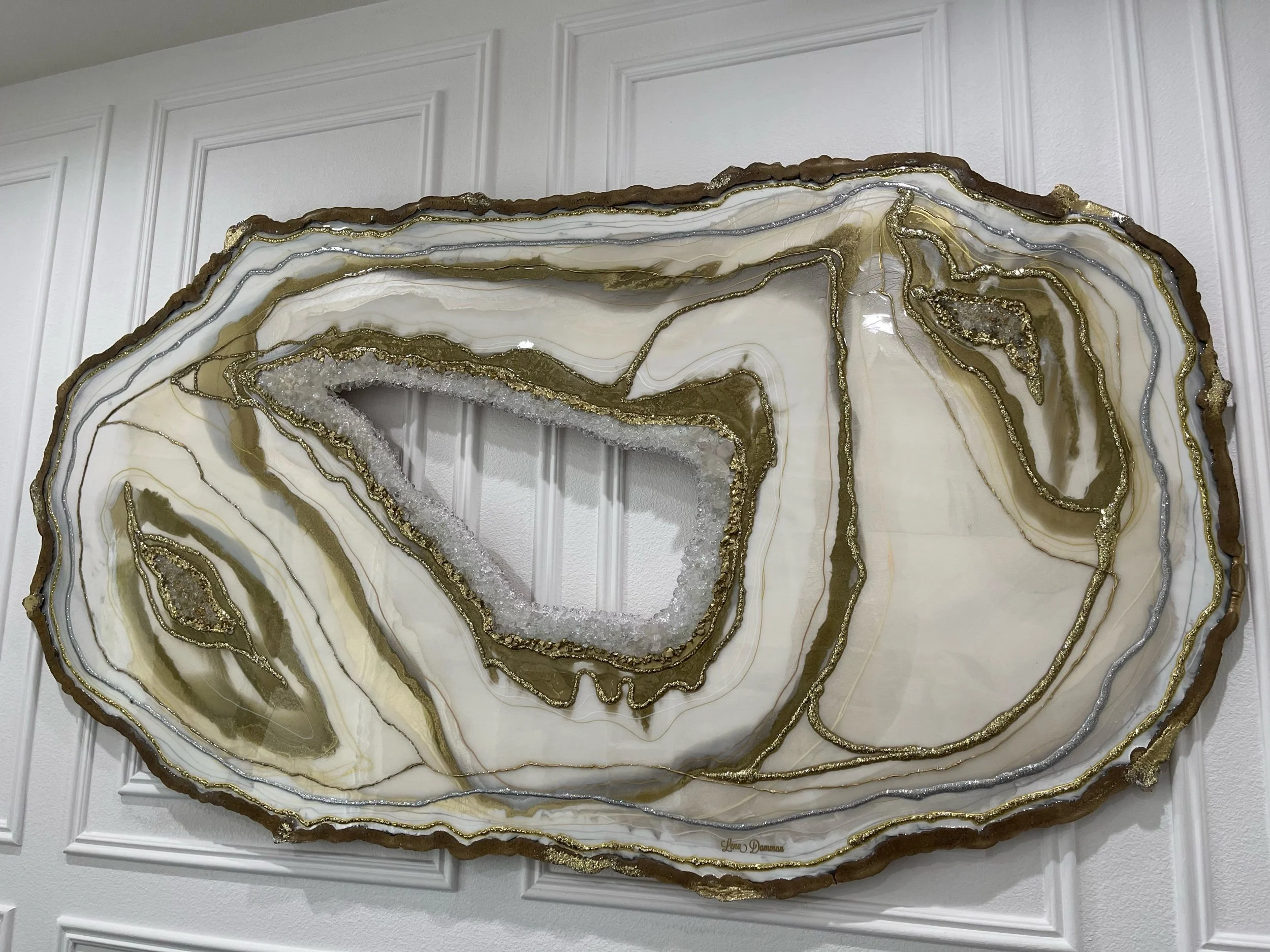 Shop › Large Geode Resin Wall Art Image 1 of 6 Image 2 of 6 Image 3 of 6 Image 4 of 6 Image 5 of 6 Image 6 of 6 Large Geode Resin Wall Art Sale Price: $950.00 Original Price: $4,300.00 94 inches x 50 inches Quantity: Add To Cart Added! 94 inches x 50 inches